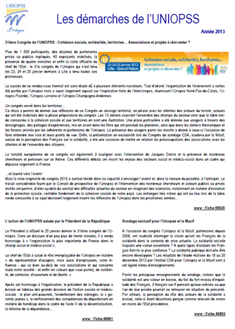 Les démarches de l'UNIOPSS en 2013 sont à lire ci-contre. ...