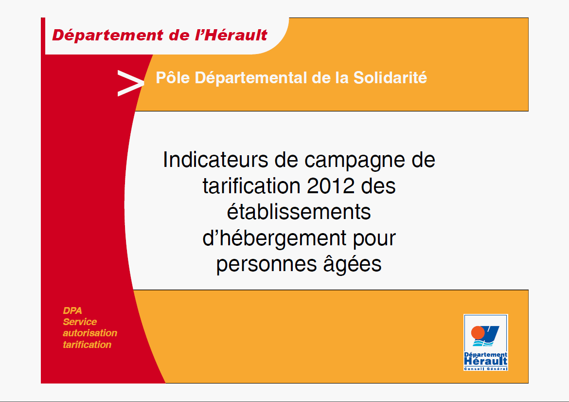 Bilan de la campagne de tarification menée en 2012 par les services du Conseil général de l'Hérault à travers la présentation de critères (GMP, ratios d'encadrement, dépenses par groupes fonctionnels...) ...