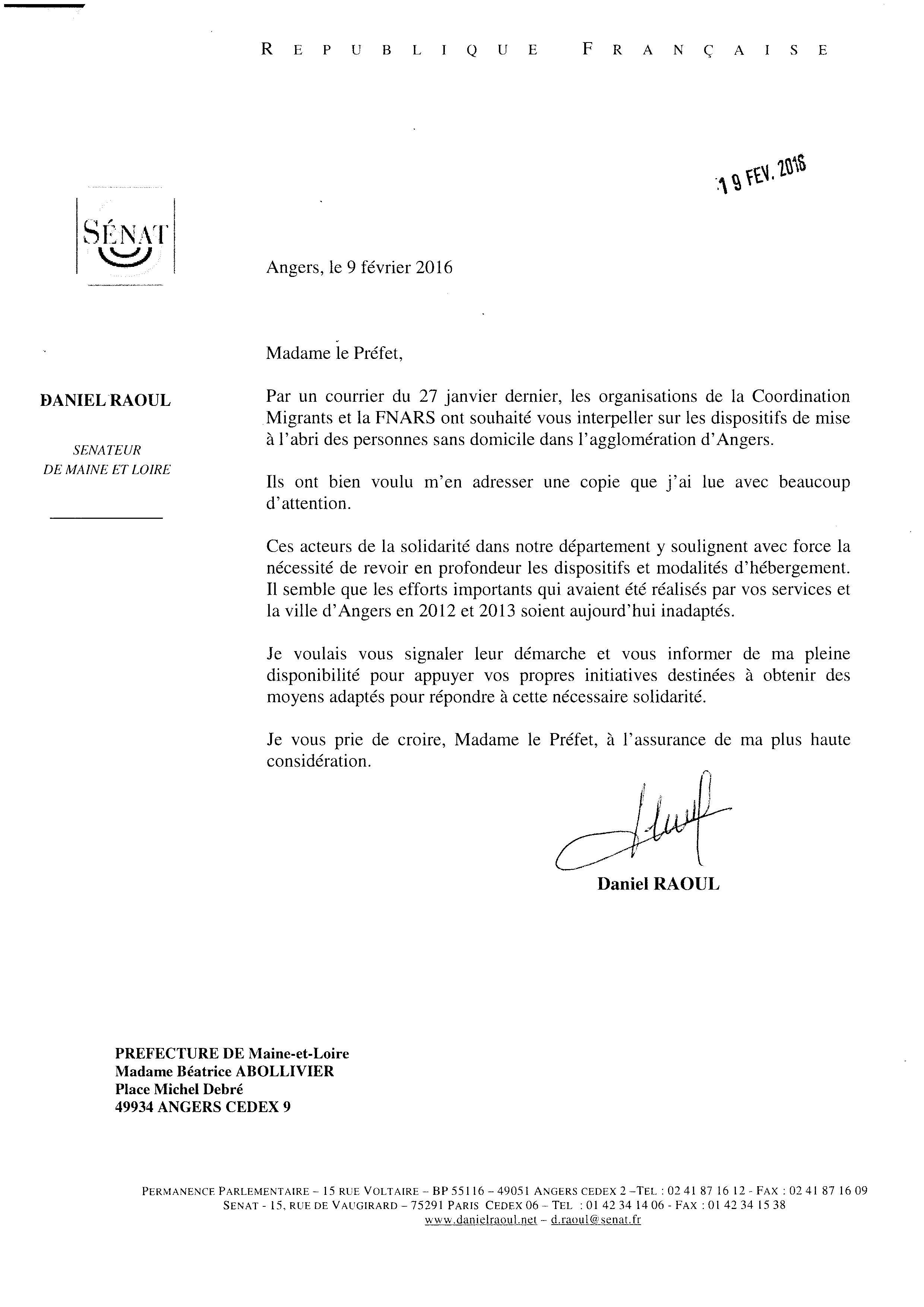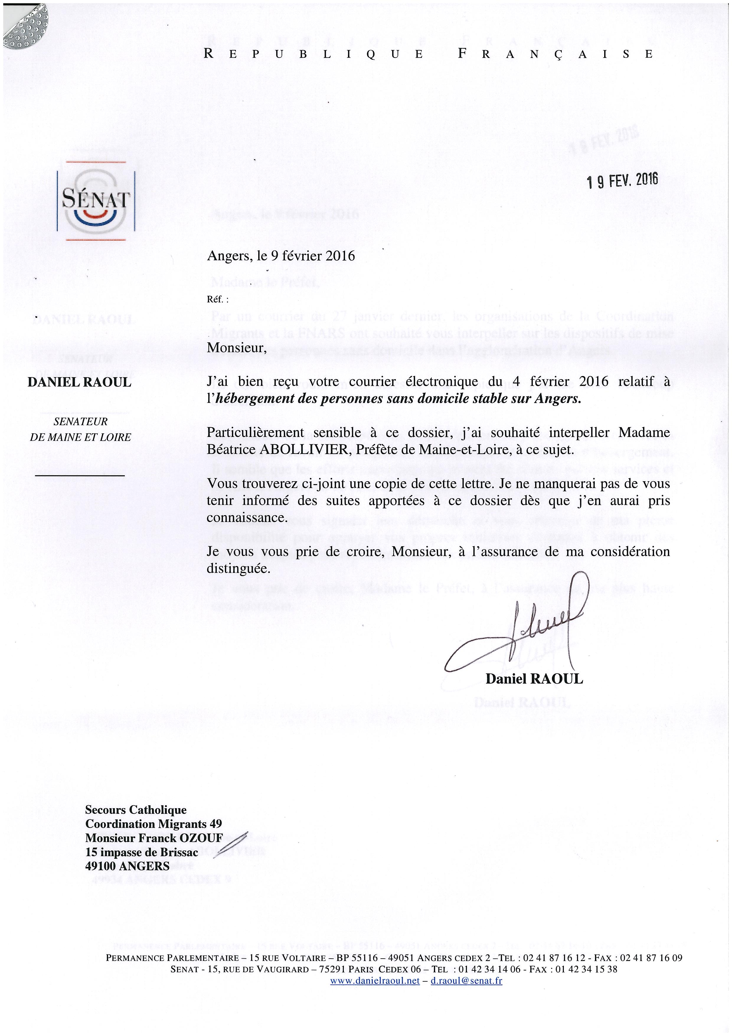 Vous trouverez aussi le courrier du Sénateur Daniel RAOUL.